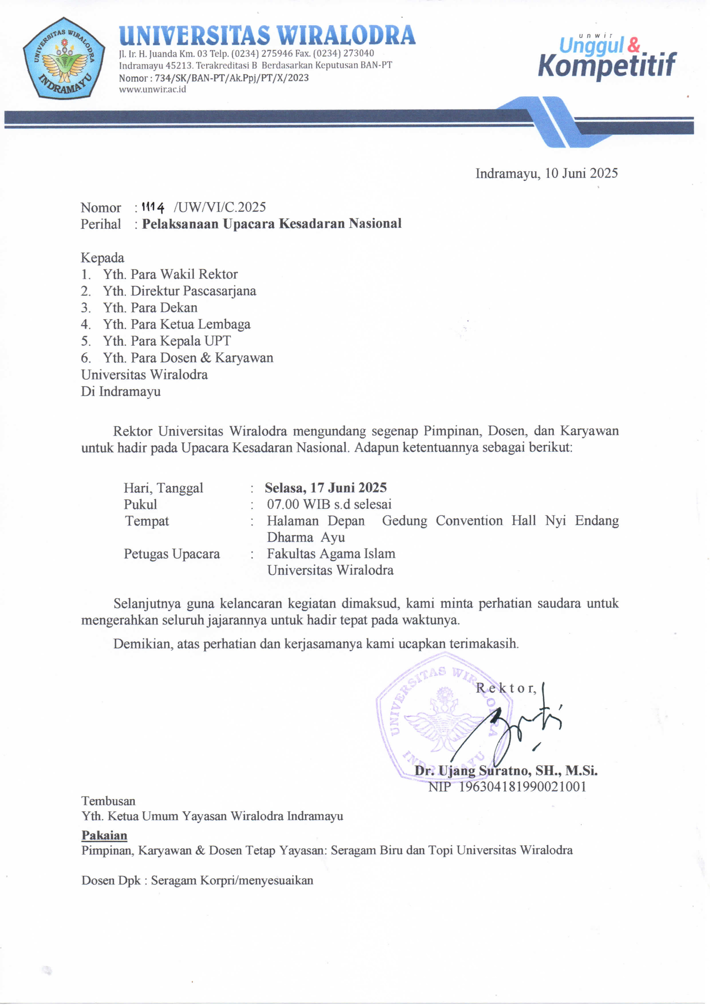 Surat Pelaksanaan Upacara Kesadaran Nasional